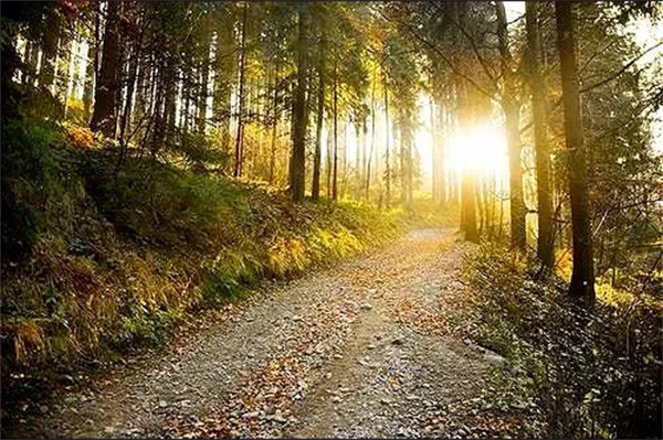 晨光被繁茂的樹木枝葉隔成光簾,