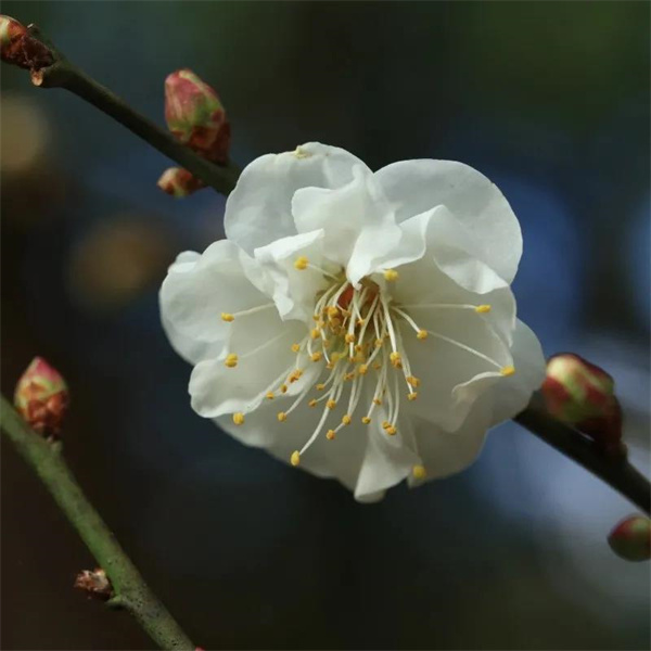 即便冬日的雪總是不太會光顧春城,但默默綻放在枝頭的白梅,如銀雕玉環雪,或疏淡或繁密,好似雪花的摯友在此靜默低語,不是雪又勝似雪。