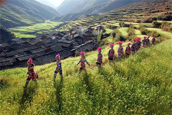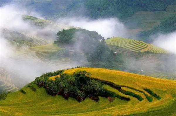 櫻花盛開、茶園青翠、百畝梯田秀美壯觀……
