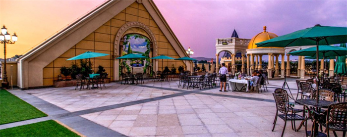 總建筑面積45000㎡。華美浮雕,重彩油畫, 絨布地毯在璀璨的水晶吊燈映襯下,營造出古歐中世紀(jì)特 有的古堡風(fēng)情。