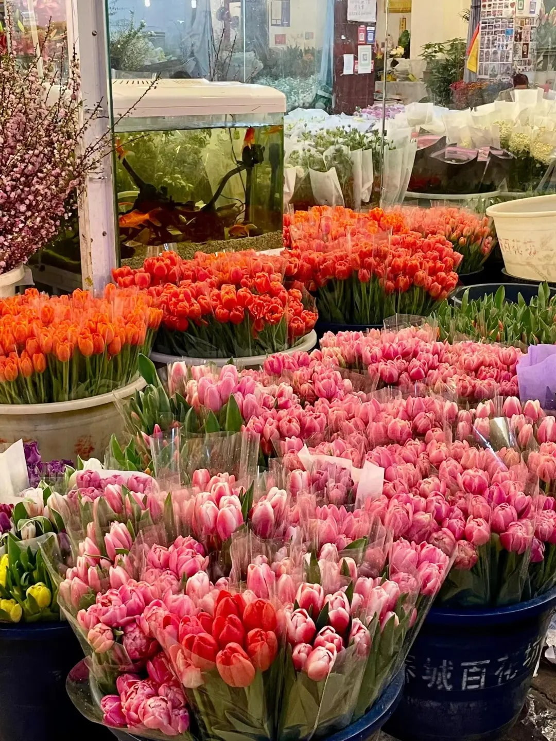 小tisp:玫瑰均價(jià)大概5-15 向日葵3-5一束 繡球5-8一朵 多肉10元3盆 郁金香進(jìn)口40一把