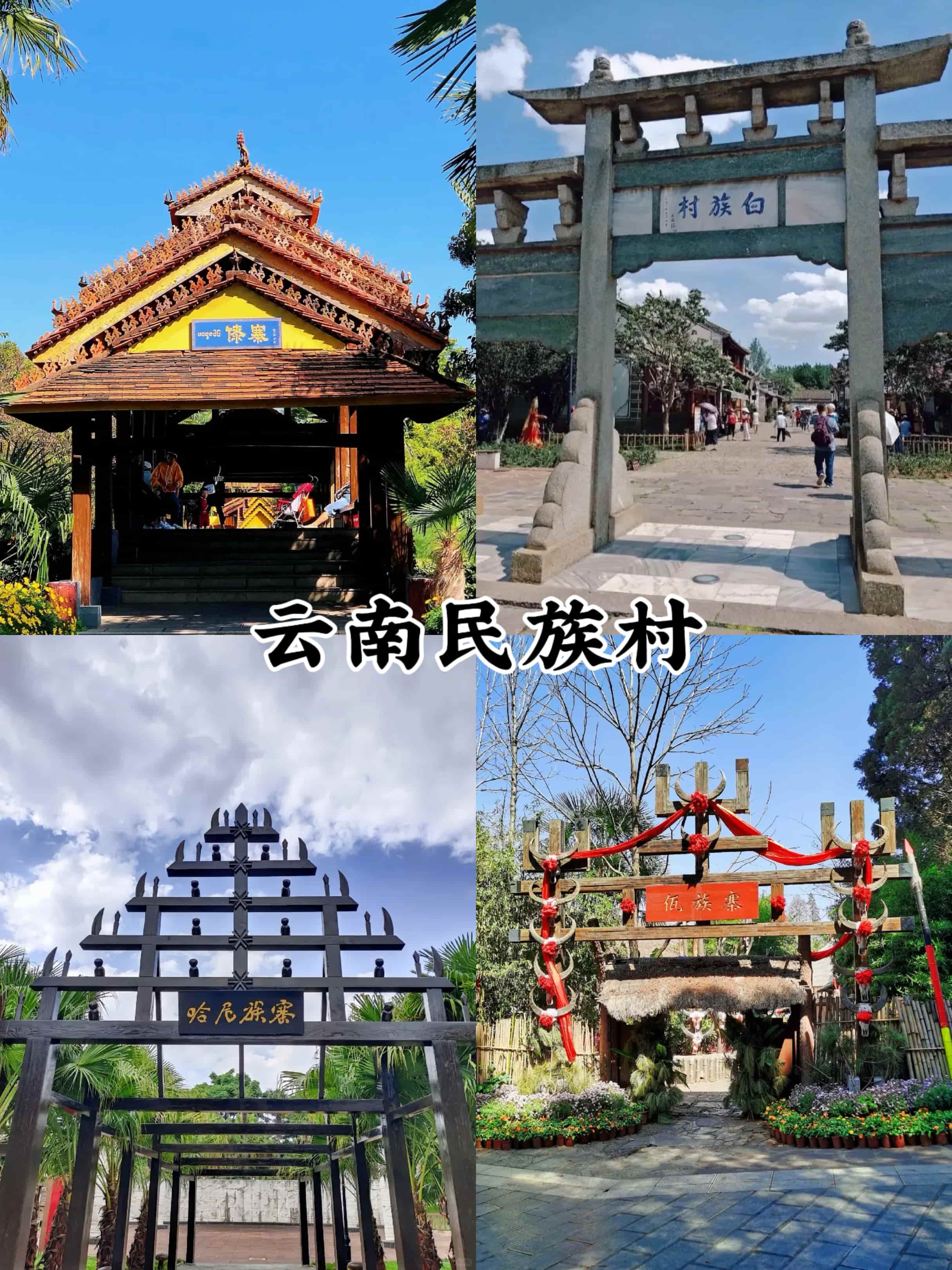 - 云南民族村(可選):若時(shí)間充裕,可打車10分鐘至民族村,體驗(yàn)25個(gè)云南少數(shù)民族的文化風(fēng)情。村內(nèi)有傣族潑水廣場(chǎng)、白族扎染坊等,下午還有民族歌舞表演。門票90元,學(xué)生半價(jià)。