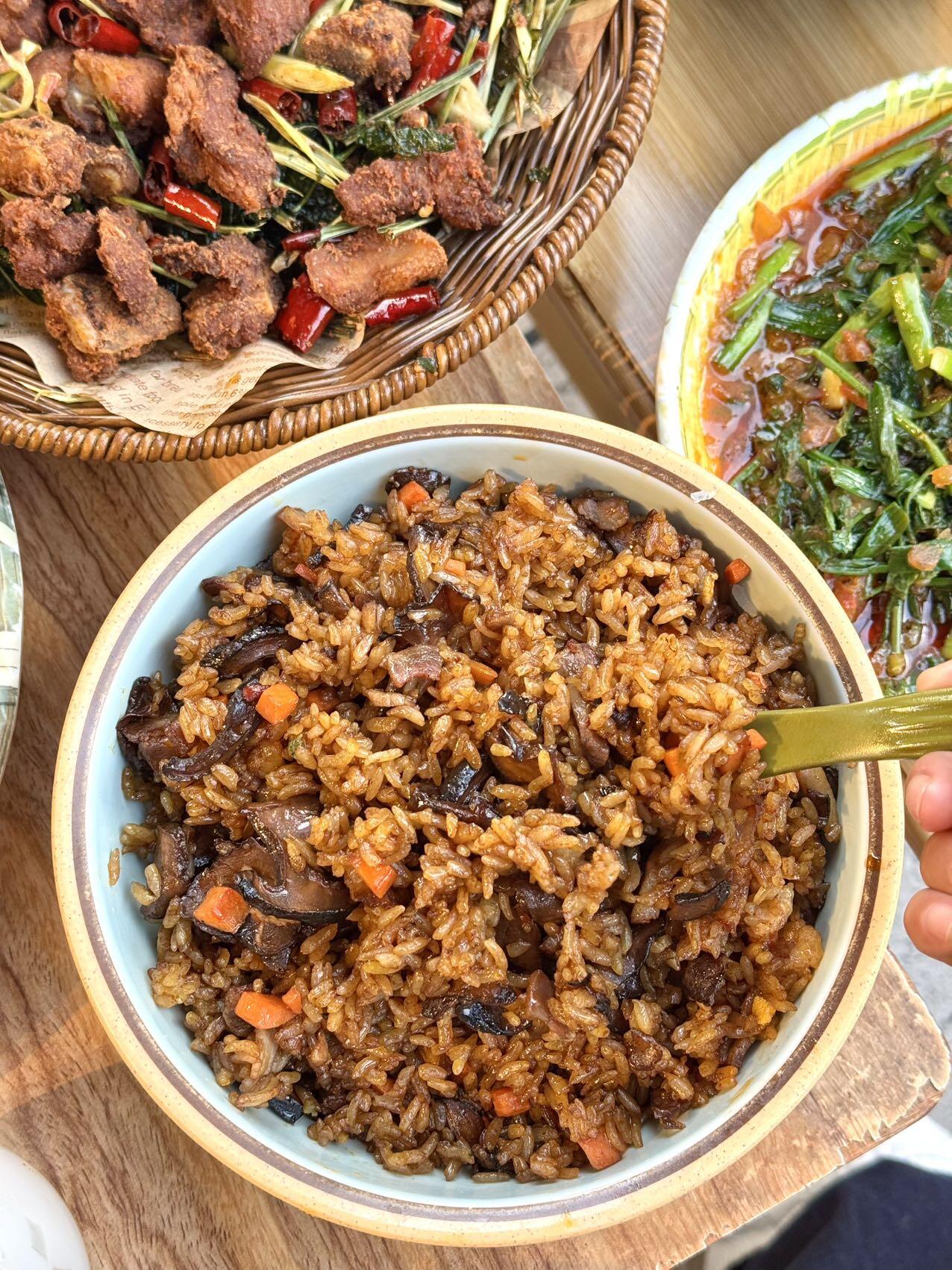 牛肝菌燜飯牛肝菌的鮮香味滲進米飯里 顆粒分明 菌香濃郁 口感很扎實 是每桌必點主食