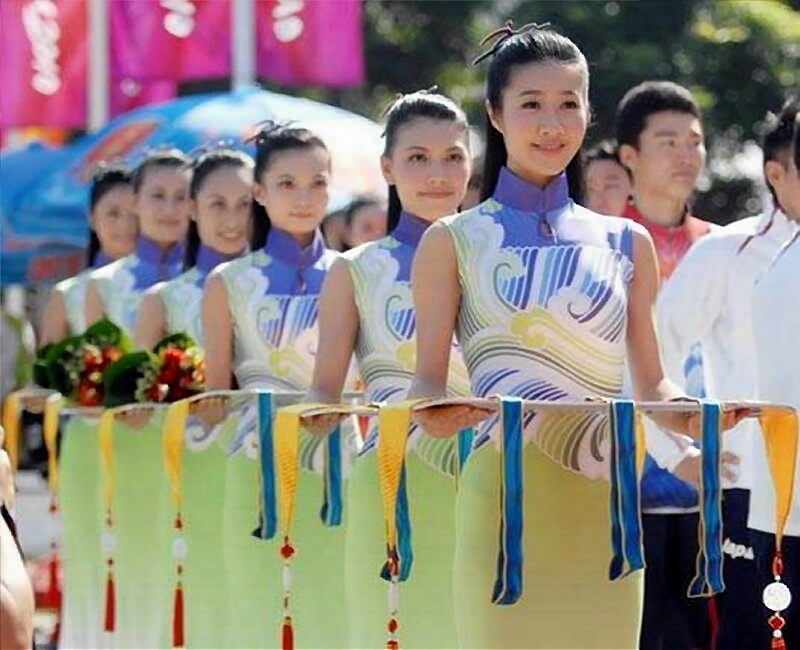 工作內容:禮儀小姐常見的工作有迎賓,引領,站立現場烘托氣氛,陪伴和協助主要人員,服侍在場人員,拉彩、捧花、托盤等。迎賓者的任務,是在活動現場負責迎來送往。引領者的任務,是在進行儀式時負責引領主要人員登臺和退場。服侍者的任務,是為在場人員提供飲料,安排休息等。拉彩者的任務,是在剪彩時展開、拉直紅色緞帶。捧花者的任務則在剪彩時手托花團。托盤者的任務,則是為剪彩者提供剪刀、手套等剪彩用品。