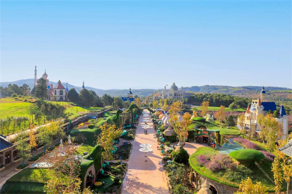 小鎮依托3295畝的鳳龍灣水庫,森林覆蓋率達83%的良好生態資源,和敘昆米軌、貴昆準軌、三橋同心等遺址資源,發揮位于昆明1小時交通圈的區位優勢,形成山——湖——河流——森林——白鷺棲息——田園風光——童話建筑風貌為一體的景觀格局,打造生態童話小鎮。