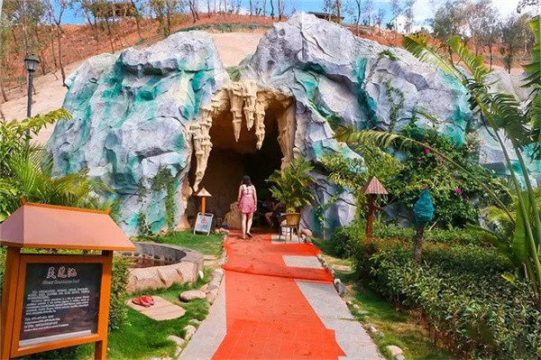 元謀人世界公園的溫泉區充分保持原生態地貌,打造一步一景的半山溫泉,包括溫泉酒店1個、溫泉泡池42個、溫泉巢穴泡池6個、溫泉VIP湯院2個。