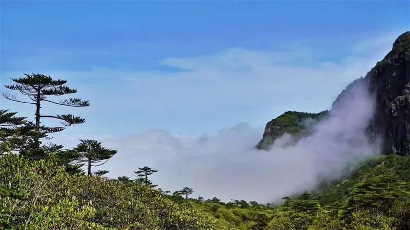 北回歸線上的綠色明珠,生長著中國面積最大的苔蘚常綠闊葉林,保存有最完整的熱帶森林生態系統垂直帶譜。大圍山常有云霧,山谷時隱時現,宛如仙境一般。登上大圍山主峰,遙看云海,近觀諸峰,山水澹澹生煙,云海浮波翻涌,如臨幻境。