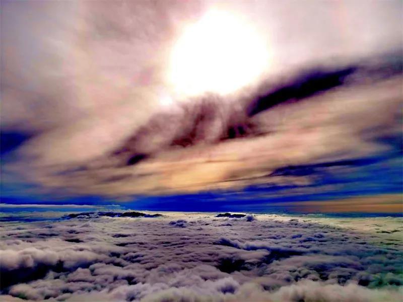 置身大蘆山的茫茫云海,如漫步云端,晨觀朝陽初升,暮賞落日紅霞,似有一只巧手執彩筆為遠處山嵐勾勒出一幅絕美圖景。云海漫涌,群山萬壑隱于云層之下,只有遠處的山巔隱約可見,如同天際的孤島,在白浪里沉浮翻騰。