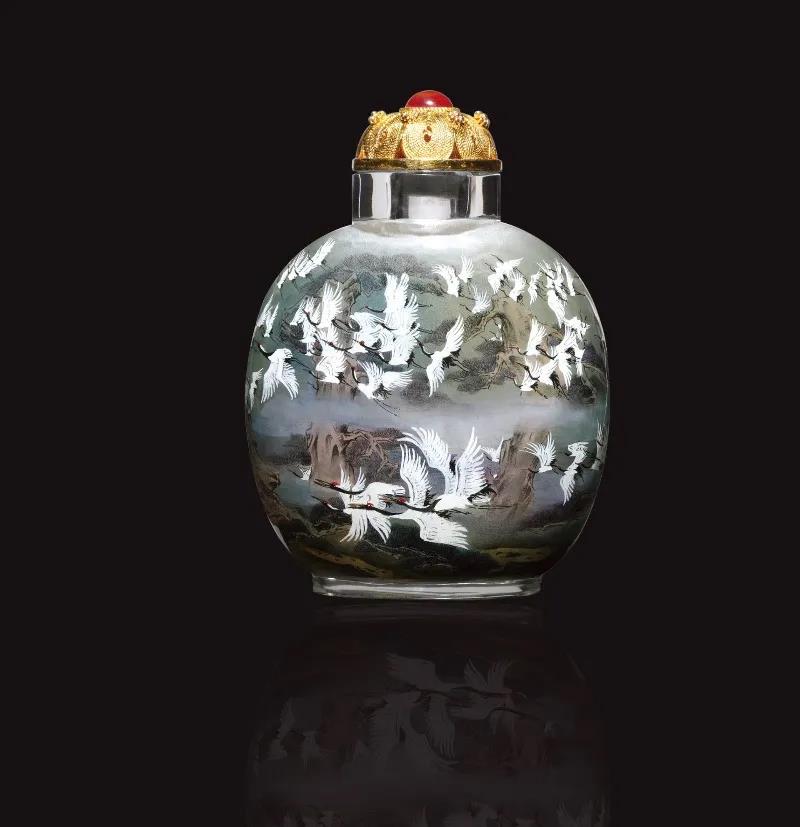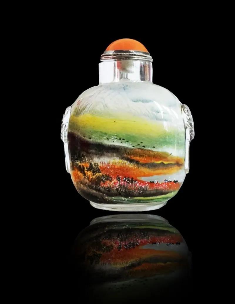 內畫出現于清代,是我國特有的傳統工藝,素以“寸幅之地具千里之勢”著稱,起源于畫鼻煙壺,它是以特制的細筆,伸入玻璃、水晶、琥珀等材質的壺內反向作畫。現代內畫技藝有京、冀、魯、粵、秦等流派。