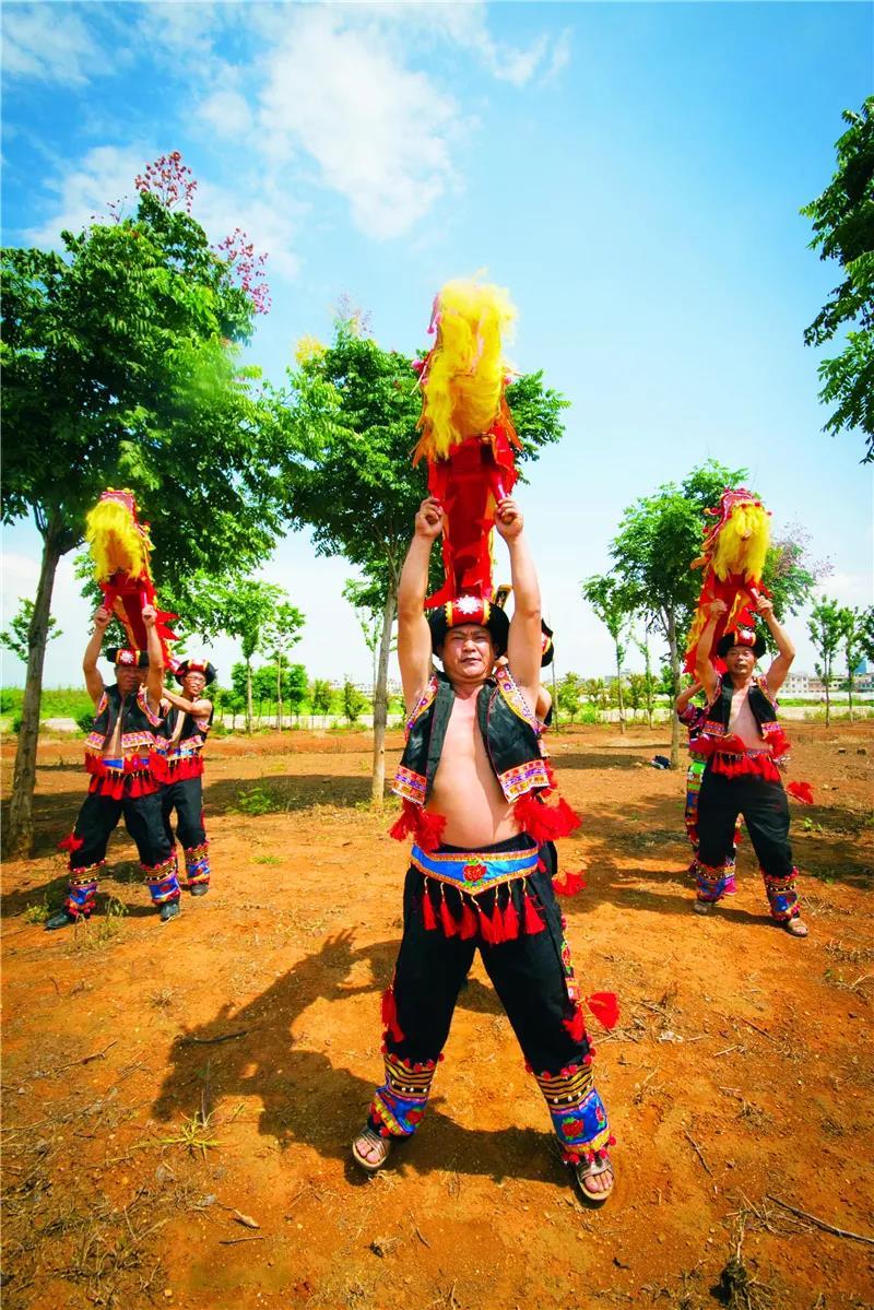 這種以戲耍為主的彝族民間舞蹈,道具是農家常用的四條腿木板凳加以簡單的形象彩扎而成,重量輕,舞蹈動作簡單,不僅大人可舞,也適合孩童耍弄。