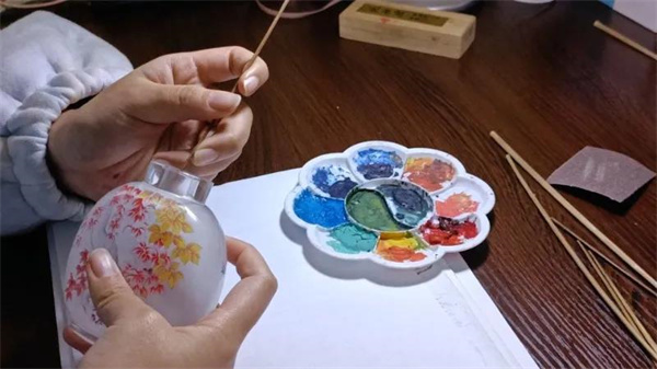她從小就喜歡畫畫,一次偶然看到了山東淄博電視臺播放的“四大神筆”欄目,對中國工藝美術(shù)大師張廣慶的內(nèi)畫技藝產(chǎn)生了濃厚的興趣,從好奇到著迷, 16歲那年,她拜入魯派內(nèi)畫大師張廣慶門下,一頭扎進了內(nèi)畫世界。
