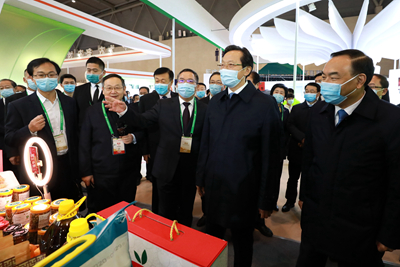 本網訊 11月27日,由農業農村部、重慶市人民政府共同舉辦的第十八屆中國國際農產品交易會在重慶市開幕,共有1.2萬余家企業攜8萬余種展品參展,吸引各地專業采購商超4萬人。農業農村部部長韓長賦、重慶市市長唐良智出席展會。